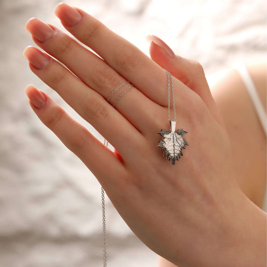 Kişiye Özel Çınar Yaprağı 925 Ayar Gümüş İsimli Kolye