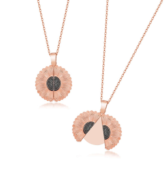 Siyah Taşlı Papatya 925 Ayar Gümüş İsimli Kolye