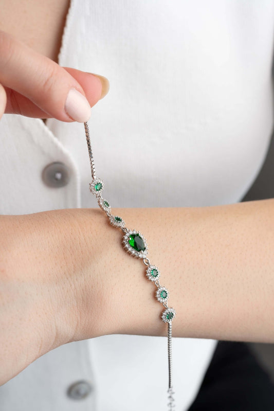 925 Ayar Gümüş Zümrüt Yeşili Taşlı Damla Bileklik