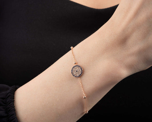 Mavi Zirkon Taşlı Nazar Boncuklu Gümüş Bileklik