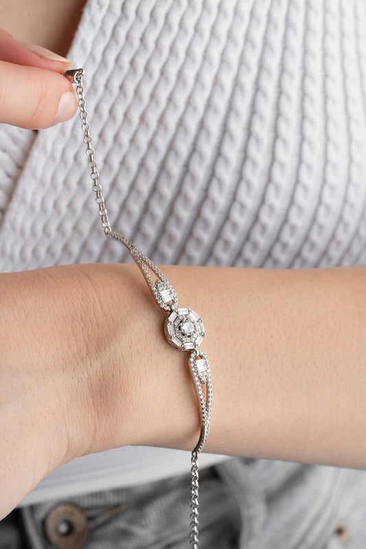 Zirkon Taşlı 925 Ayar Gümüş Su Yolu Bileklik
