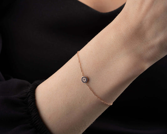 925 Ayar Gümüş Mavi Taşlı Nazar Boncuklu Bileklik