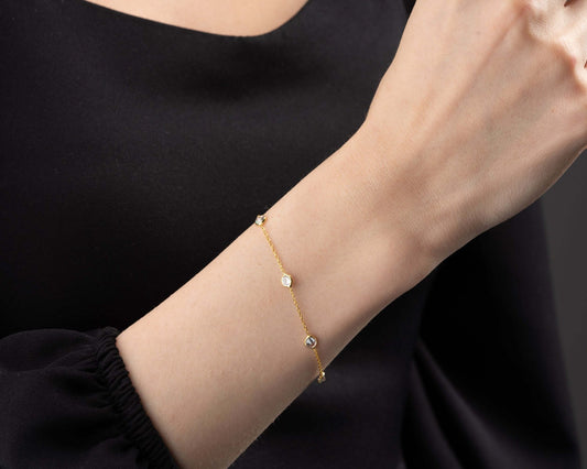 925 Ayar Gümüş Üç Taşlı Bileklik