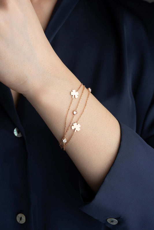 925 Ayar Gümüş Üç Zincirli 4 Yapraklı Yonca Bileklik