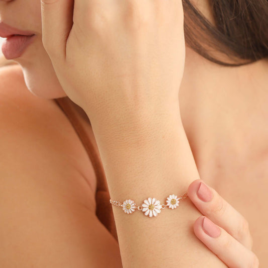 Üçlü Sıralı 925 Ayar Gümüş Papatya Bileklik